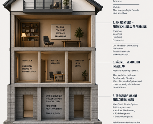 Das Führungsarchitektur Briefing zeigt in 45 Minuten, wie dieser Prozess entsteht – und wo er strukturell unterbrochen werden kann.